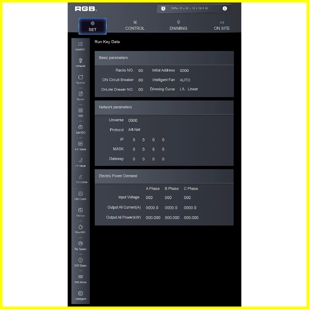 9i is an artificial intelligence dimming racks independently developed by RGB, which has completely independent core technology and obtained software Copyrights, all digital electrodeless trigger and multi-backup independent CPU central processor technology. It has a variety of output configurations such as sine wave, thyR, relay and dimming relay mix, and supports visual lighting control system and visually displays the online and offline status of dimming racks. Realize remote monitoring, editing and setting of relevant parameters.