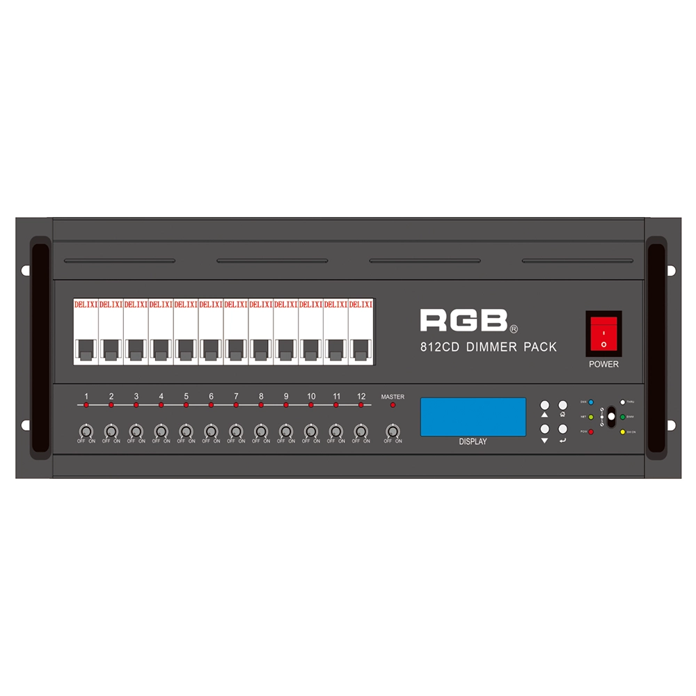 RGB is the latest development and production of all digital, intelligent, and network dimming through the hybrid silicon box. It comes with six channels (806 silicon box), twelve channels (812 silicon box) with analog knob dimming, 49 DMX field recordings and replays (field backup function), and self-programming and recording field. RGB-8 silicon box with DMX512 digital signal input and RJ45 network input interface, with various types of dimming stations at home and abroad used. It is a powerful, stable performance and reliable work of a new generation of intelligent digital dimming through a hybrid silicon box.