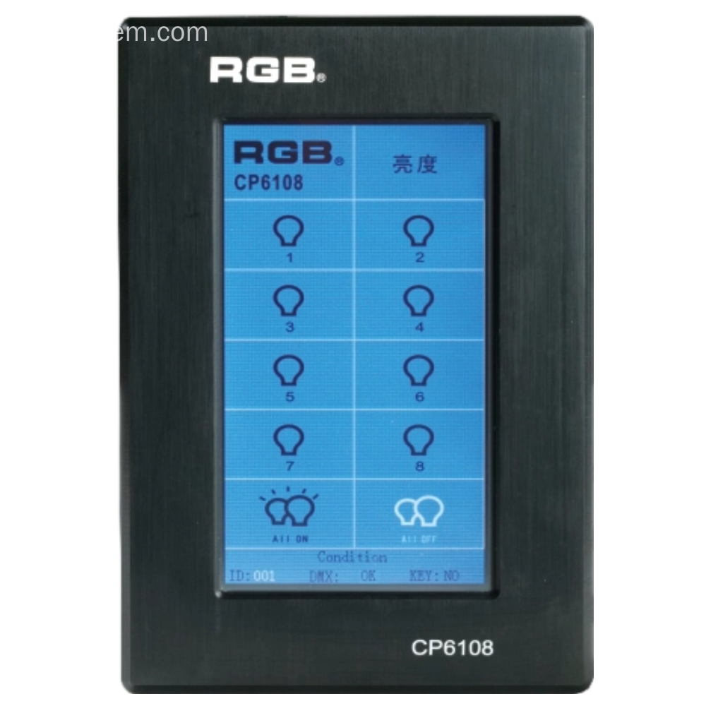 The CP6108 lighting control panel is a lighting control device for theater stage lights, work lights, environmental lighting, commercial art lighting, sports venue lighting, and other places. By connecting to the dedicated lighting control host CP6100, it realizes the central control of the lighting system, supports a visual lighting control system, and intuitively displays the online and offline status of CP6108. Realize remote monitoring, editing, and setting of corresponding parameters.