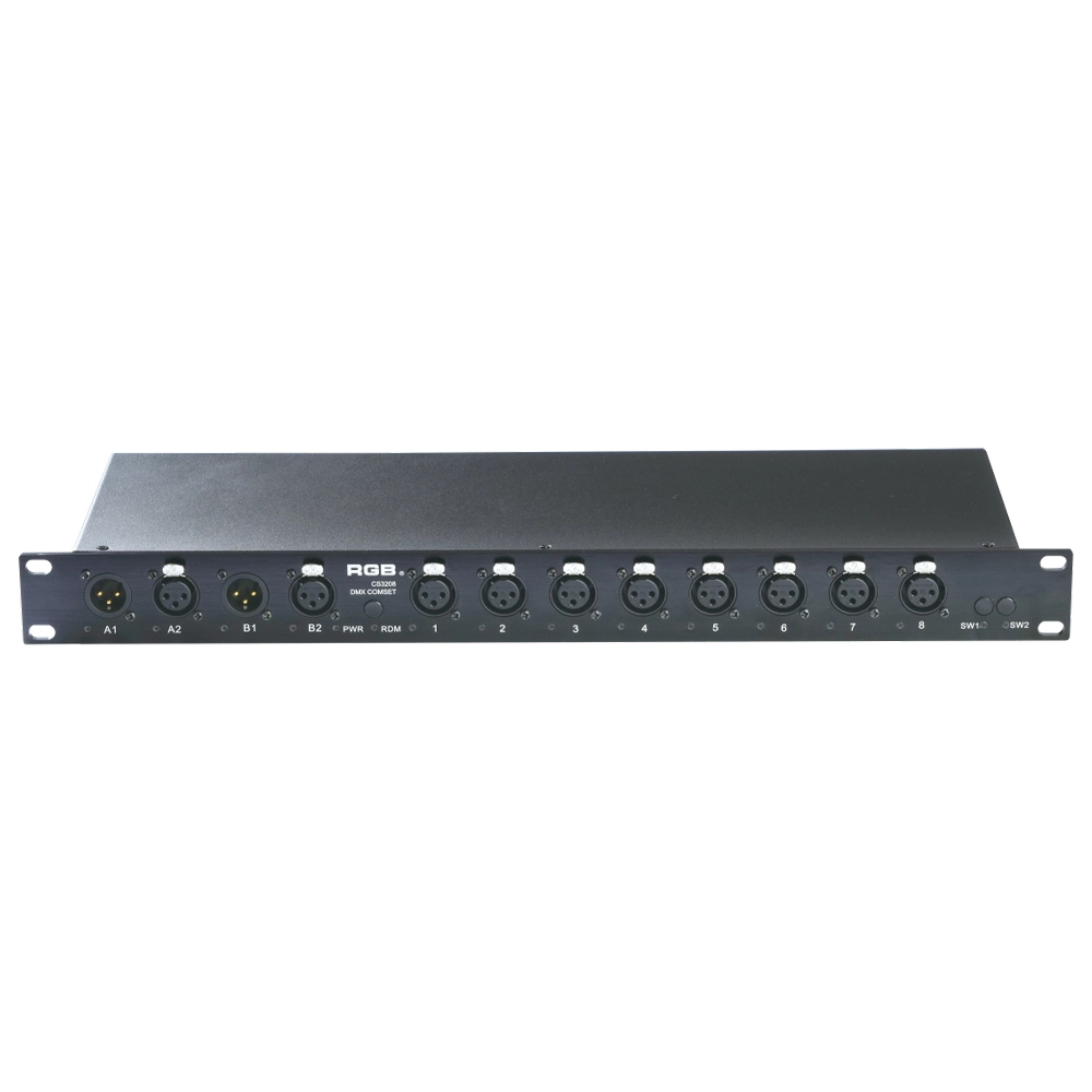 The rack-mounted DMX signal amplifier complies with the DMX-512 standard protocol, improving DMX-512 signal transmission quality and ensuring reliable system control. It helps prevent issues such as AC high-voltage backflow into lighting control systems, lightning-induced surges, and signal interference caused by short circuits, thereby enhancing overall system stability.